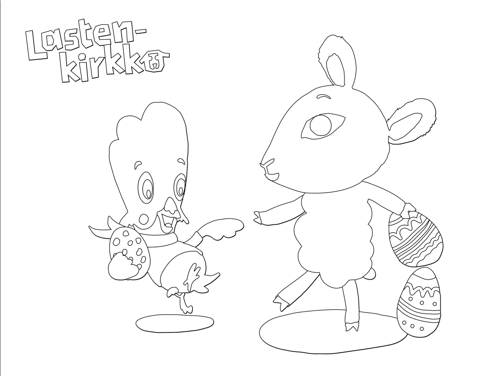 Vietä pääsiäinen Päkän ja Pulmun kanssa, Tulosta ja väritä kuva.