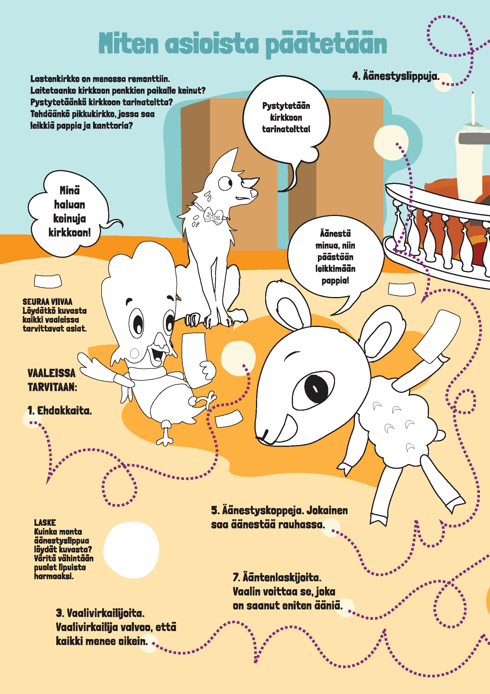 Lasten äänen kuuleminen ja demokratiakasvatus ovat tärkeitä asioita seurakunnassa. Päkän posti käsittelee nyt lastenvaalia, jolla vaikutetaan Lastenkirkonkylä kirkon remonttiin.